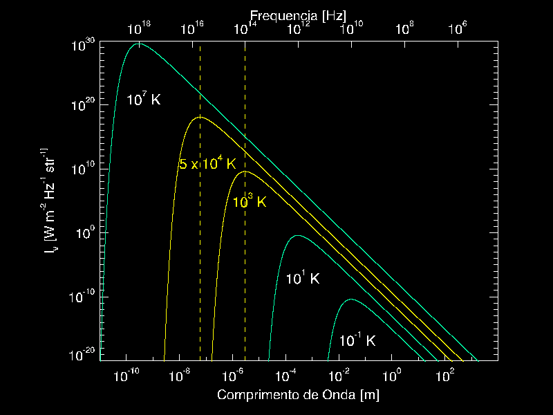 corpo negro a diferente temperatura: de milhões a um décimo de
